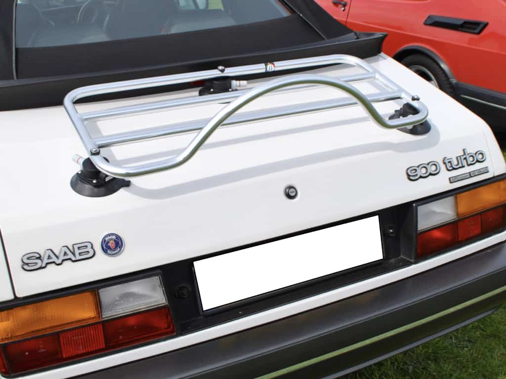 klassisches saab 900 turbo cabrio mit eingebautem revo-rack gepäckträger