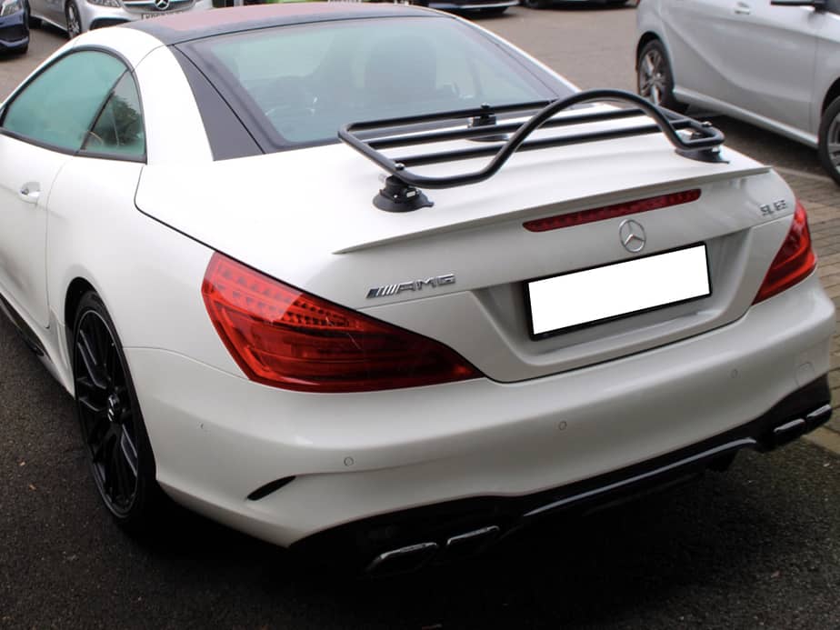 black bmw e93 3 series cabrio with a luggage rack fitted carrying a black bag